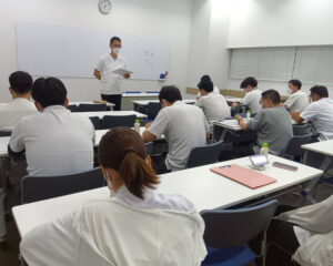 入社時の新人研修に加え、毎月1回のミーティングと勉強会(不定期)を開催することで、